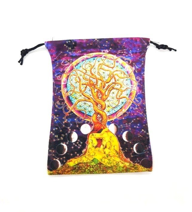 שקיק מהמם עם הדפס ססגוני של עץ מכושף עם שלבי הירח. מתאים לטארוט או רונות.